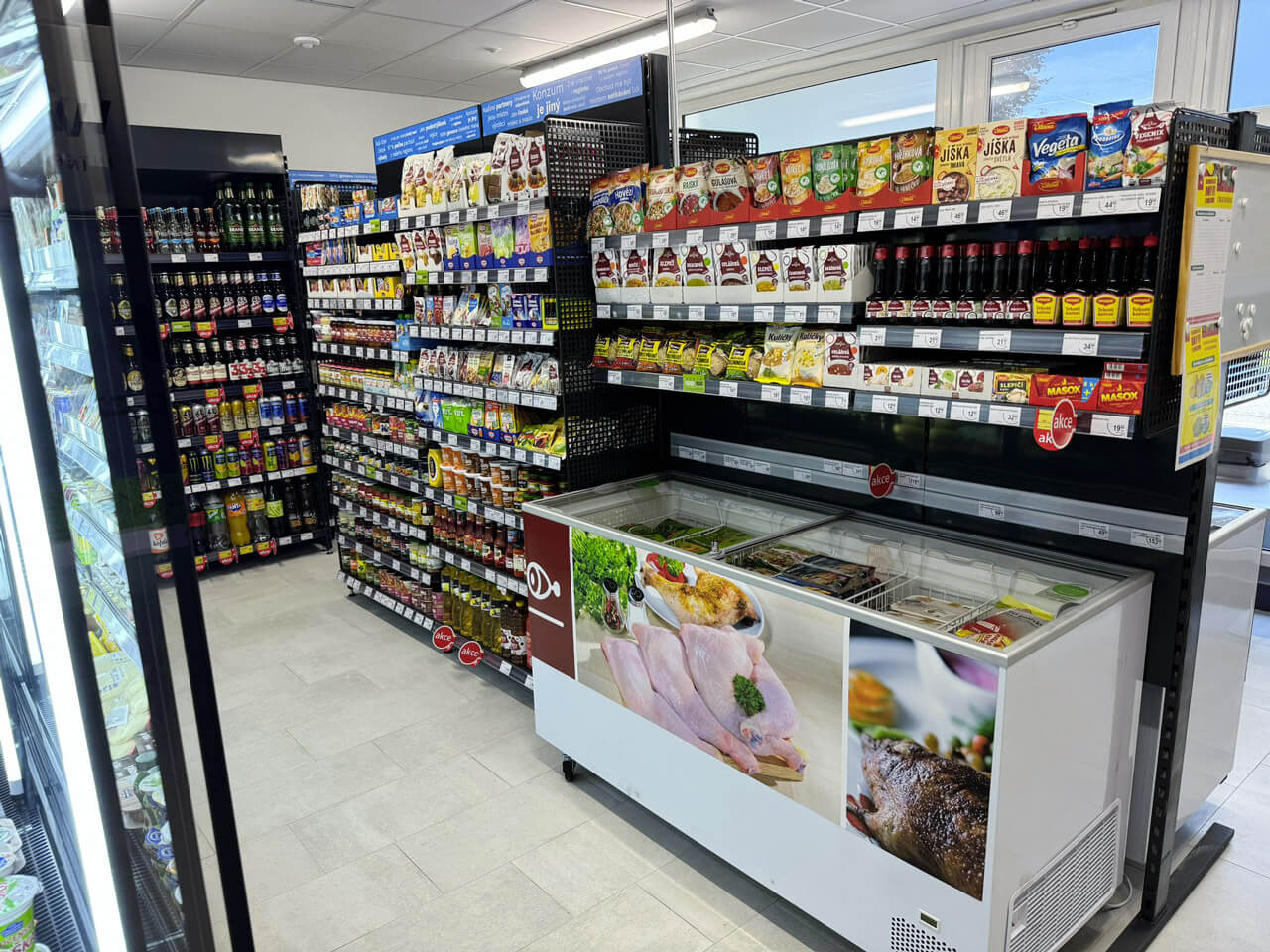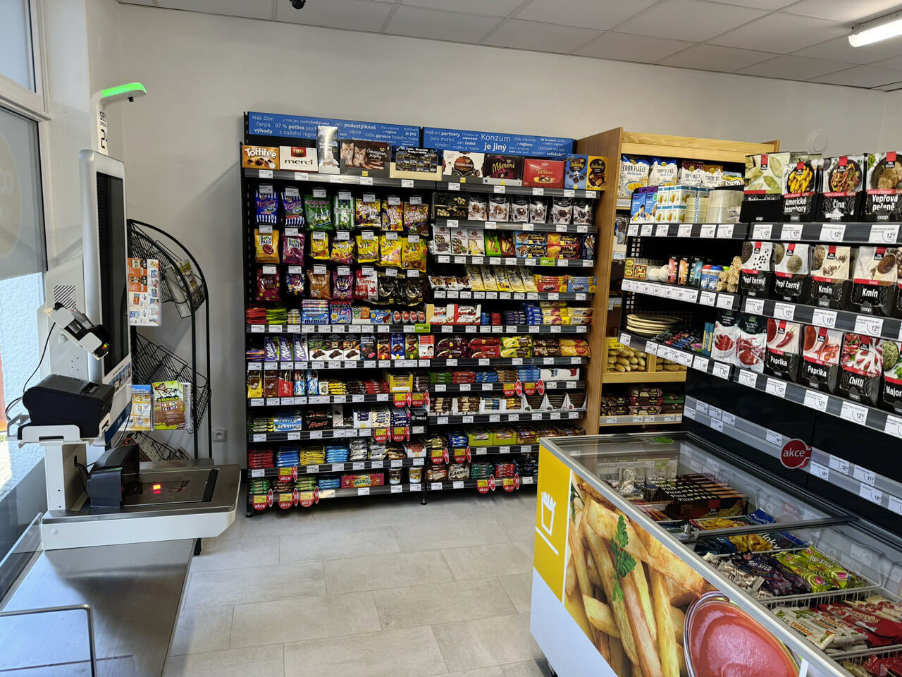 KNOWINSTORE si tentokrát dokázala hravě poradit i s prostorem o ploše 35 m2, kde jsou implementovány veškeré technologie pro bezobslužnost a zároveň je zachován plnohodnotný sortiment zboží.